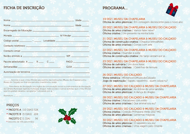 [Inscrições no Museu da Chapelaria até ao dia 16 de dezembro.]